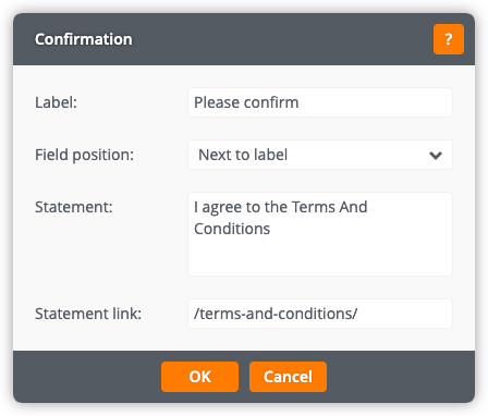 An optional link for the statement — for example, you could link the statement I agree to the Terms and Conditions to a copy of your terms and conditions. Click to choose a link, in the same way as linking text.
