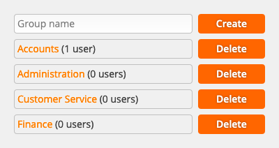 To create a new group, enter its name and click Create. To edit a group, click on its name. To delete a group, click the corresponding Delete button.