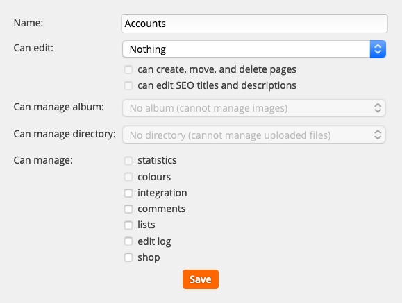An album that members of the group can manage images within. They will also be able to manage any sub-albums within the album. Note that anyone with page edit rights can still browse albums that they can’t manage.