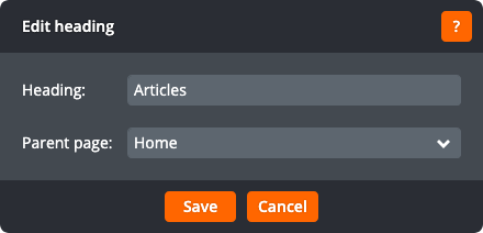 Click Save to save changes to the heading. Click Cancel to return to the site map window without changing the heading.