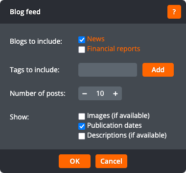 The blog feed window lets you change the following settings: