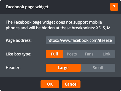 Click anywhere on a Facebook page widget to display the Facebook page widget window: