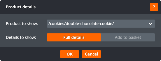 Click OK to apply the changes to the product details component. Click Cancel to return to the page without changing the product details component.