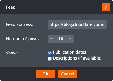 Click OK to apply the changes to the feed. Click Cancel to return to the page without changing the feed.